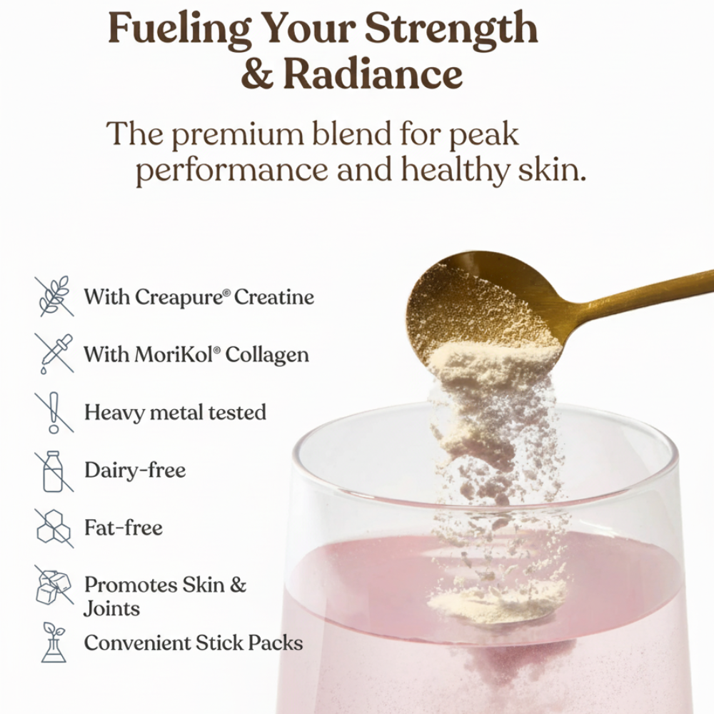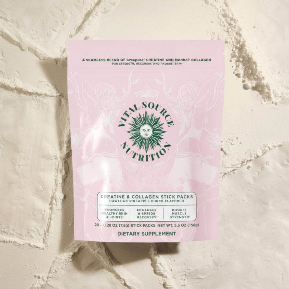 Fuel your body with Vital Source Creatine & Collagen Stick Packs — a powerful fusion of Creapure® Creatine and MoriKol® Marine Collagen designed to enhance muscle strength, speed recovery, and promote glowing, healthy skin.