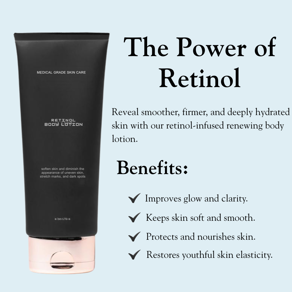 Experience the ultimate in skin renewal with our Advanced Retinol Body Lotion. Formulated with medical-grade retinol and nourishing ceramides, this luxurious lotion deeply hydrates, firms, and smooths your skin. It helps reduce the appearance of uneven tone, stretch marks, and dark spots while restoring elasticity and radiance.